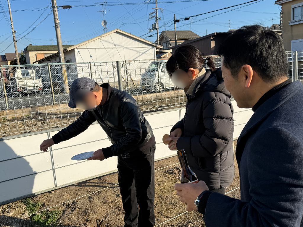形式にとらわれず、ご家族らしいペースで行う地鎮祭は、とてもあたたかく、穏やかなひとときとなりました。