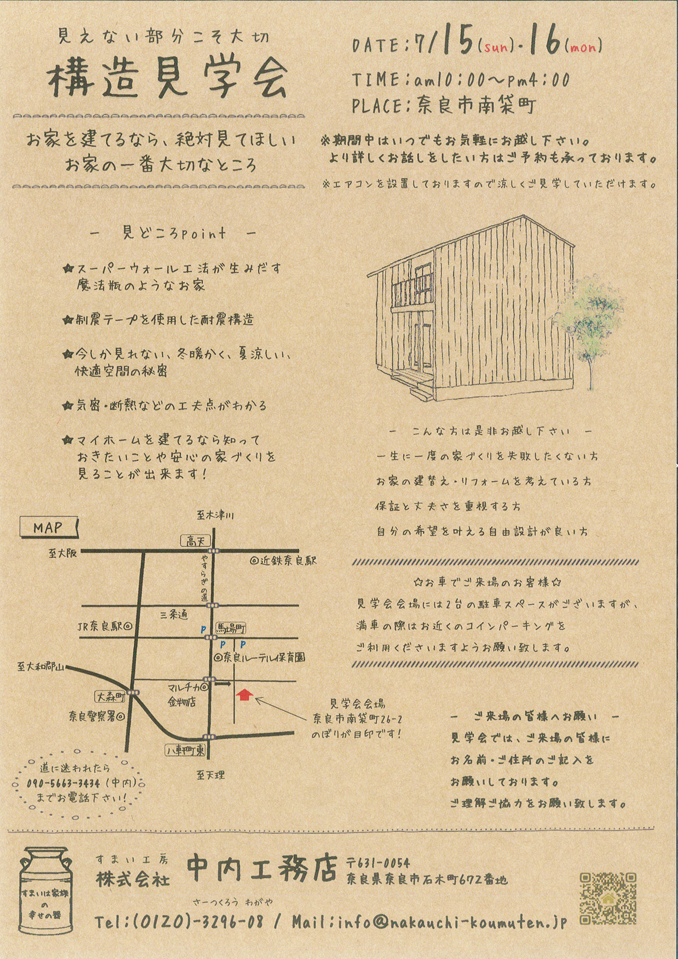 「中内工務店」の建築の考え方の詰まった構造見学会にぜひお越しください。